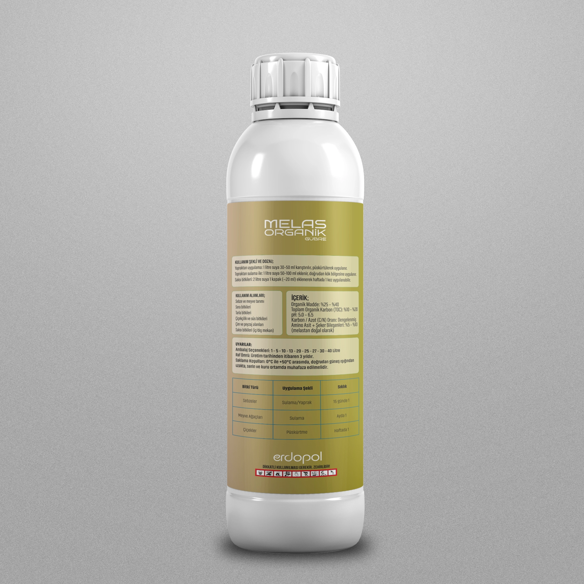 Melaslı organik gübre, şeker pancarının işlenmesi sonucu elde edilen melasın özel işlemlerle fermente edilmesiyle üretilen doğal ve yüksek etkili bir sıvı gübredir. Bitkilerin gelişiminde doğrudan rol oynayan karbonhidratlar, amino asitler, vitaminler ve doğal mineraller içerir.