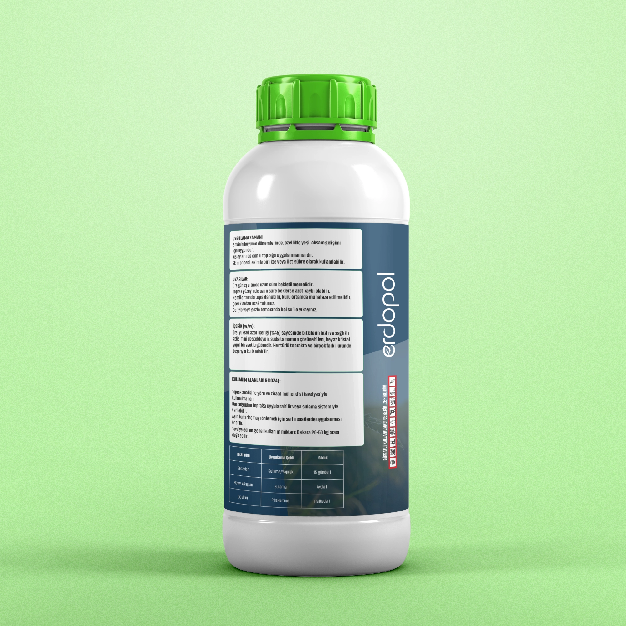 - Bitkinin gelişme dönemine ve toprak analizine göre doz ayarlanmalıdır.